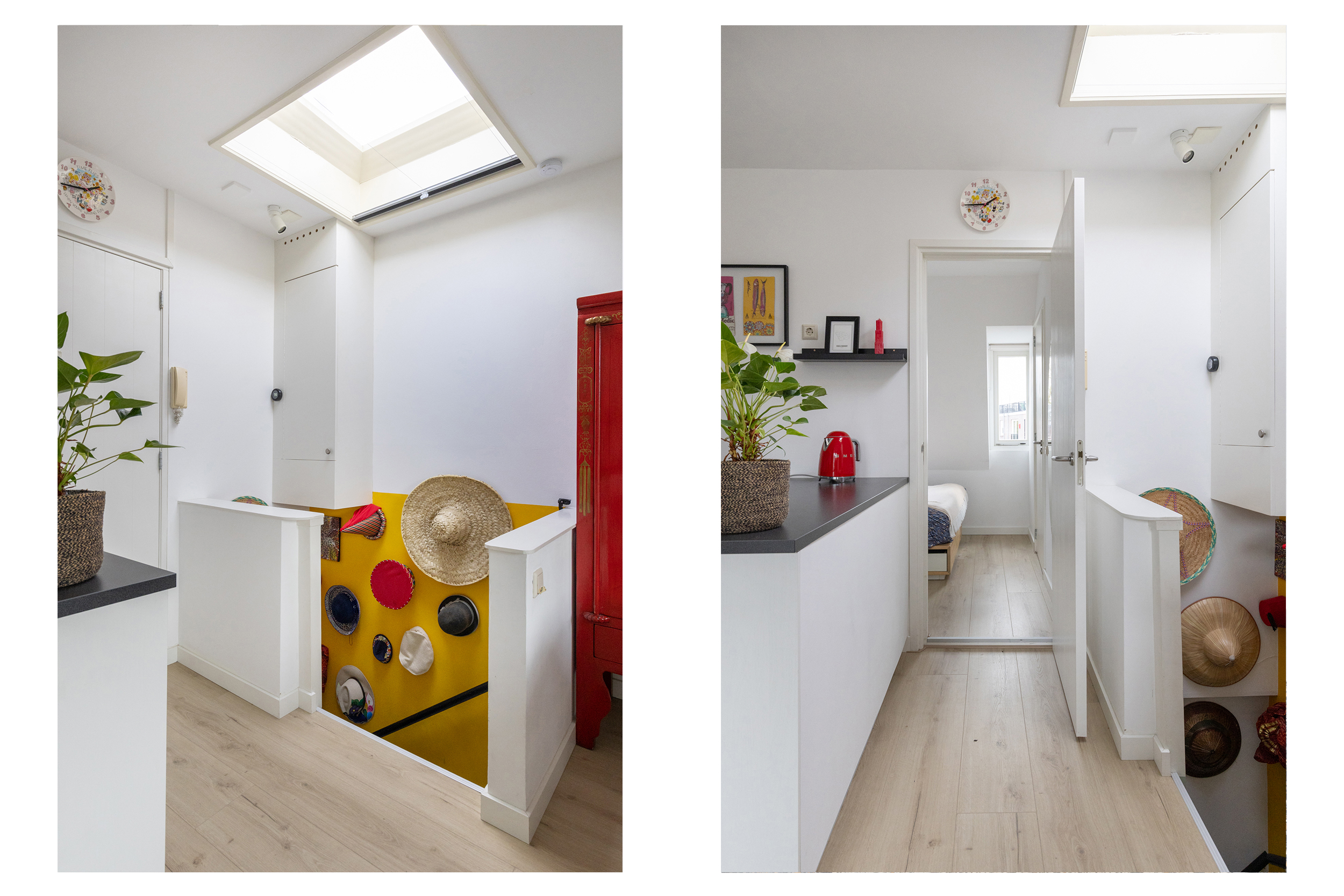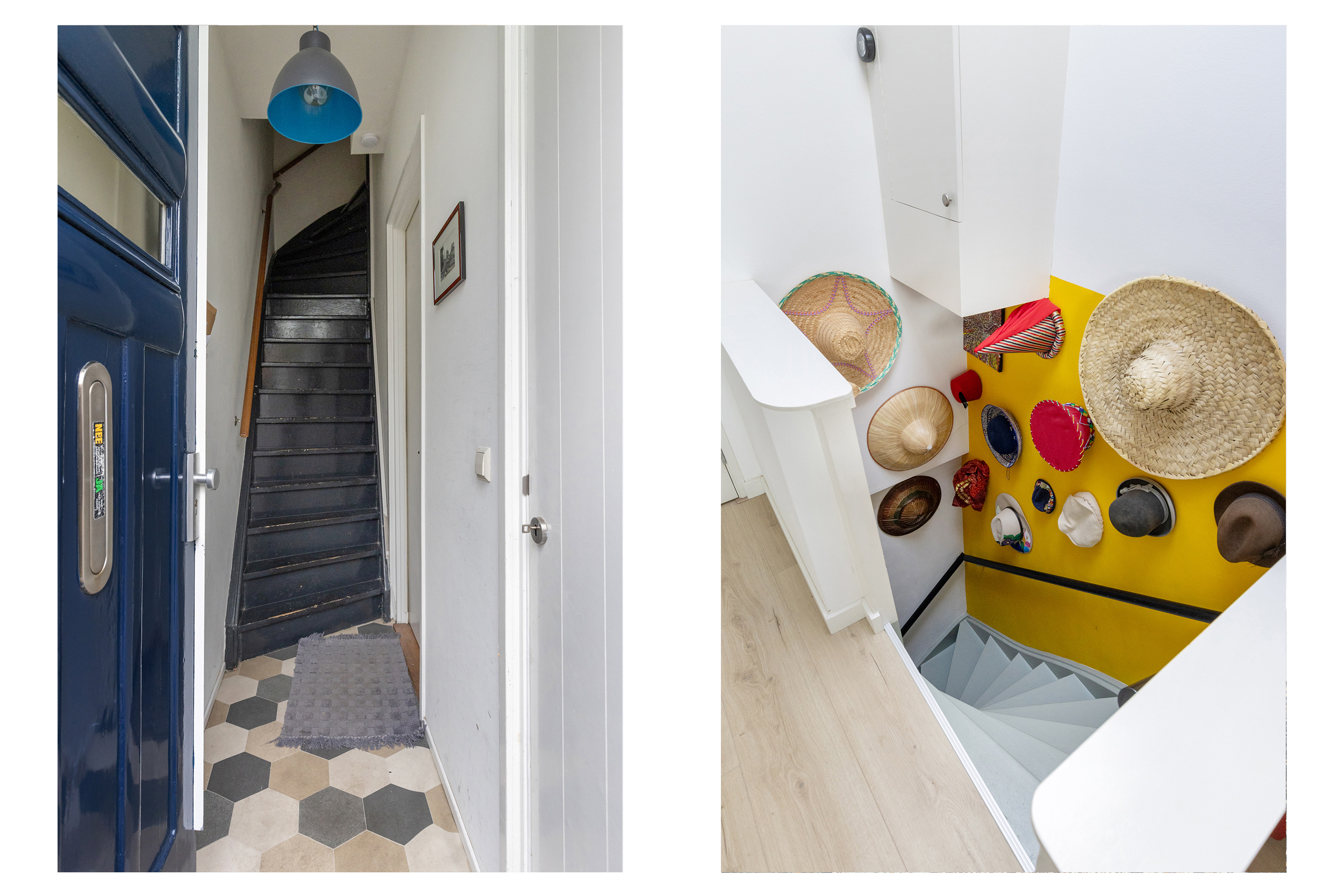 Je komt binnen via de centrale entree op de begane grond. Op de eerste verdieping bevindt zich je eigen voordeur, met een hal die ruimte biedt voor je garderobe. Een praktische binnenkomer die zorgt voor een opgeruimd gevoel zodra je thuiskomt.