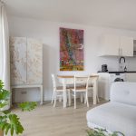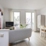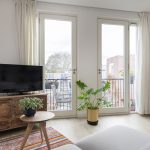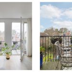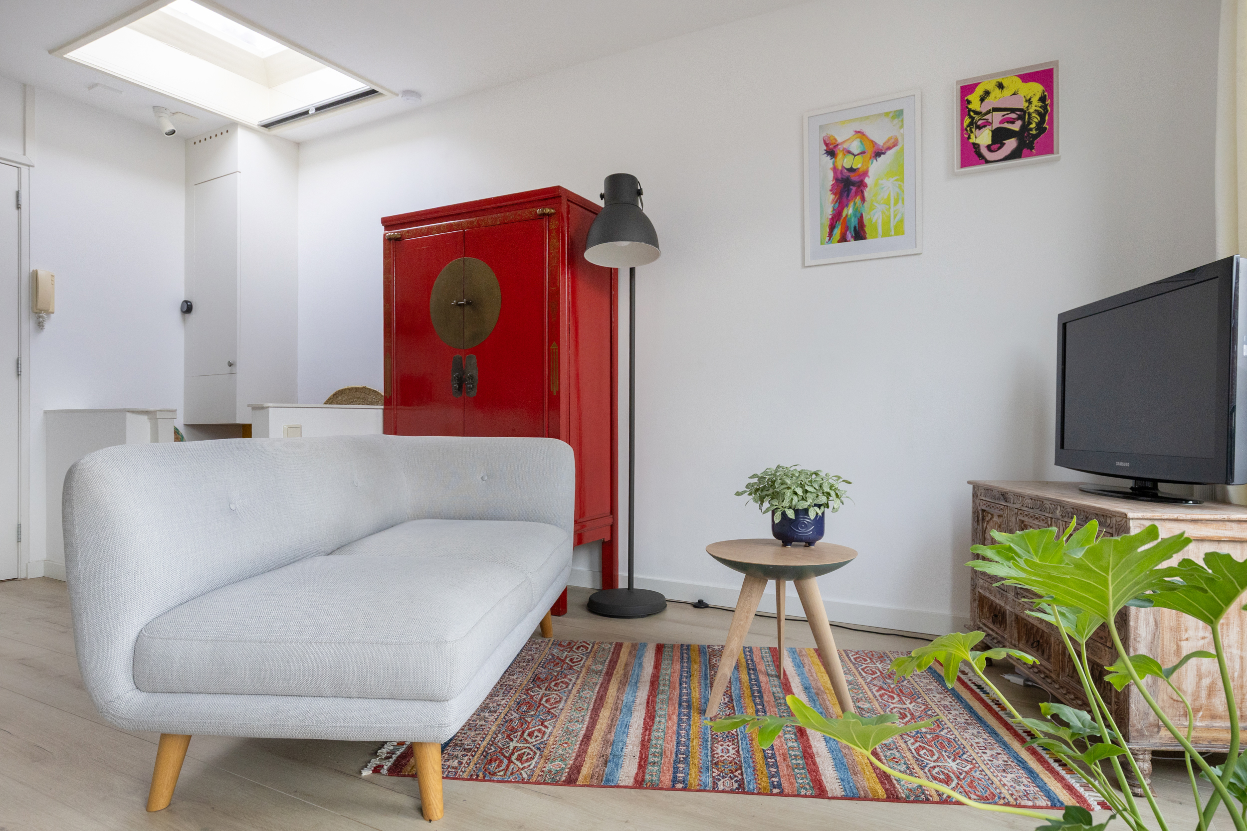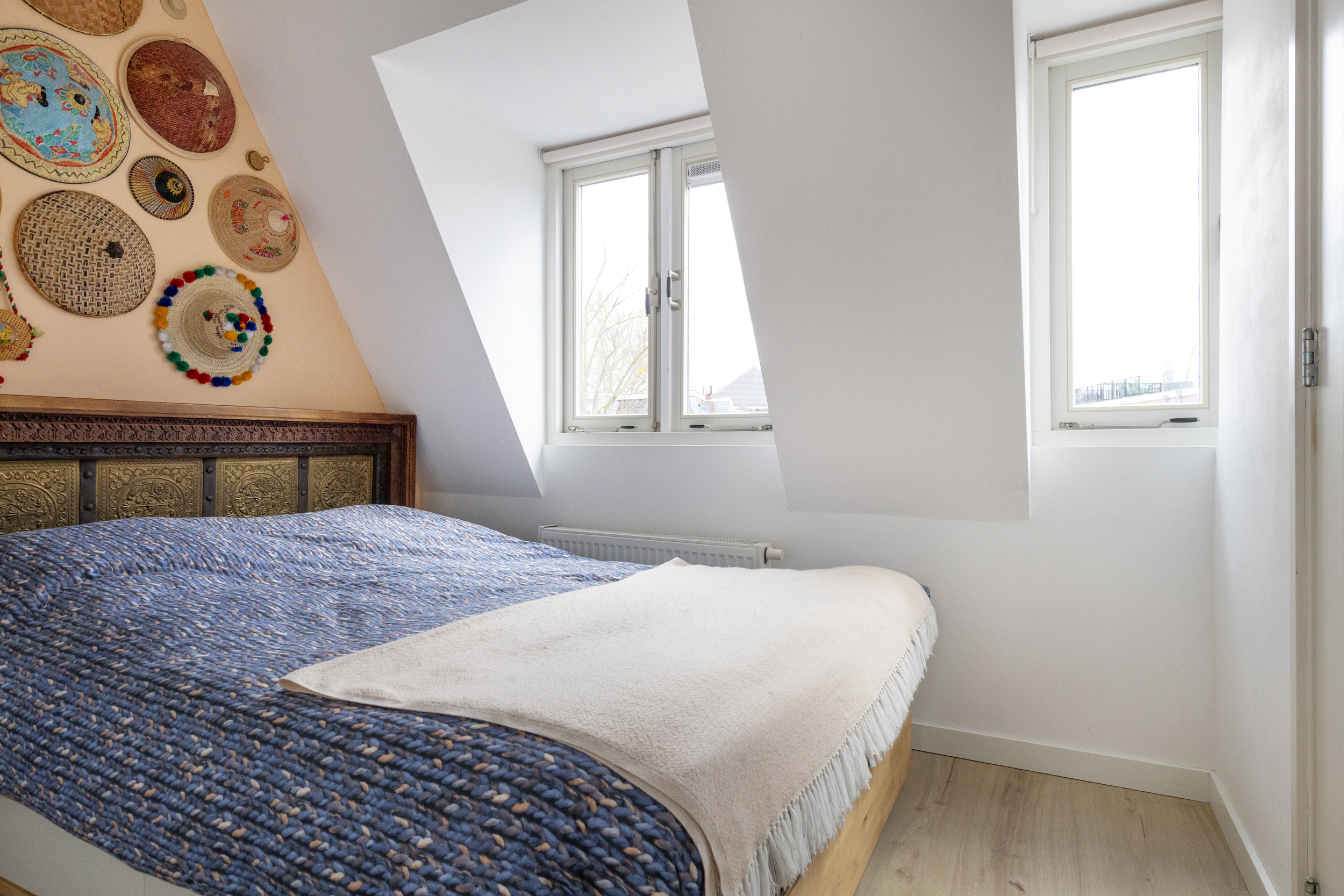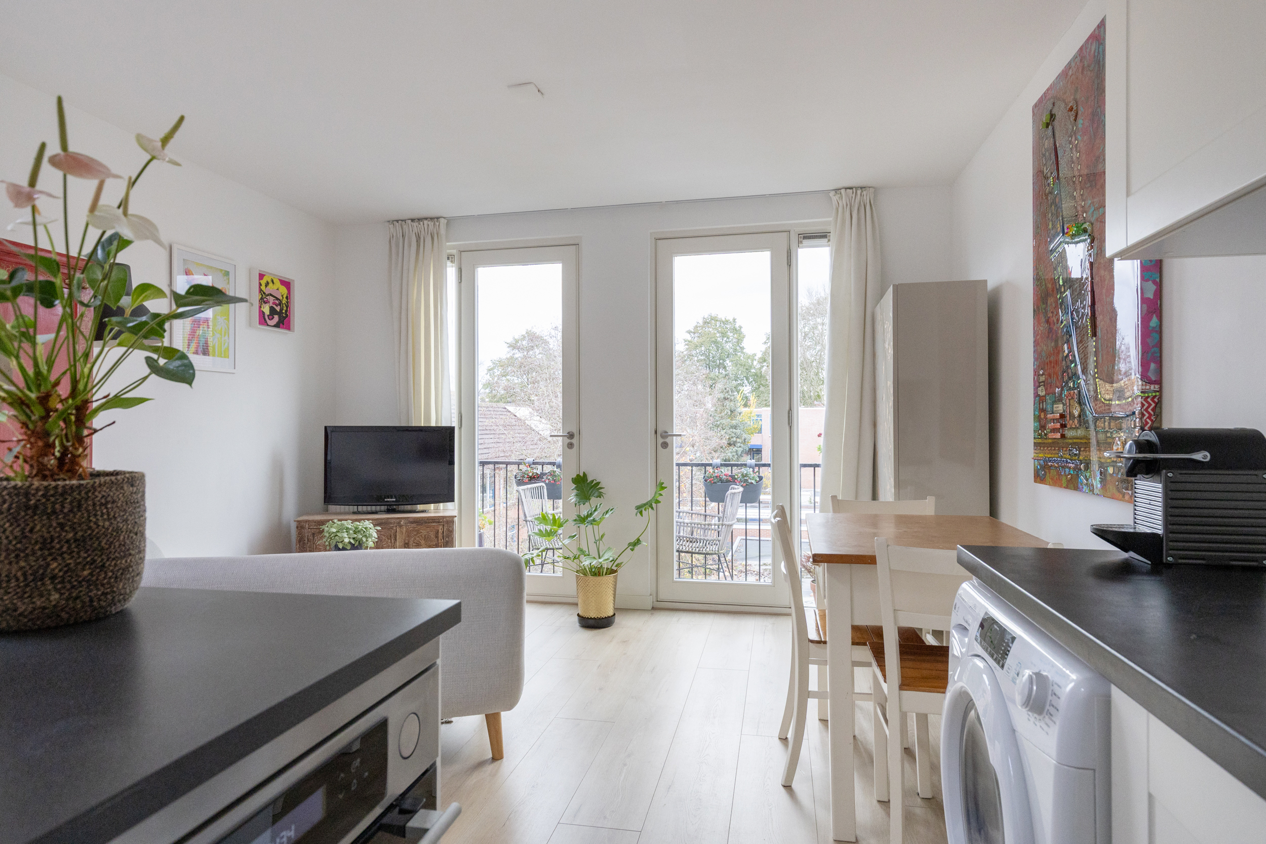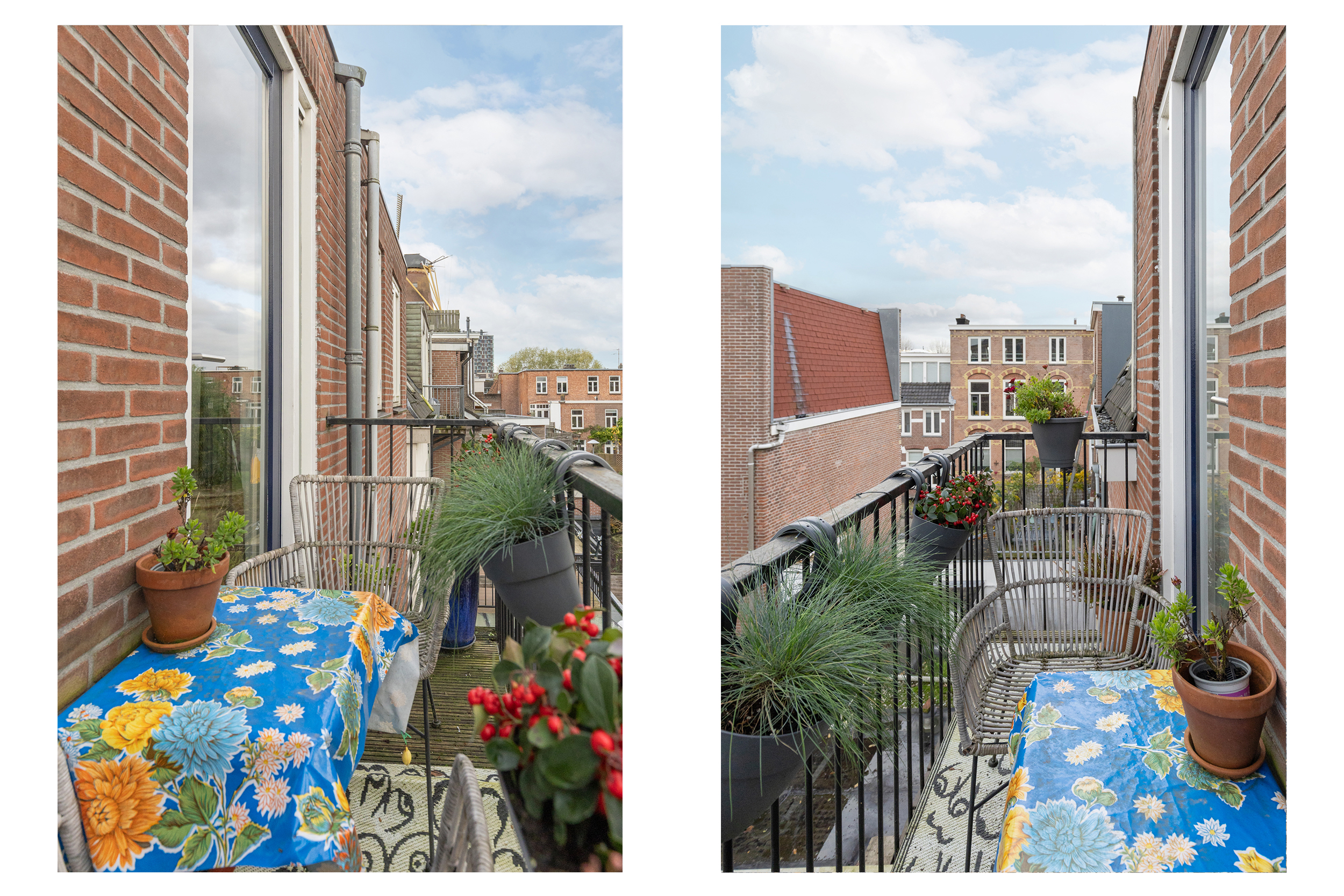 De tweede verdieping is de woonlaag, compact ingedeeld en slim benut. De woonkamer is licht en sfeervol, met twee deuren naar het balkon aan de achterzijde van de woning. Hier kun je heerlijk zitten in de buitenlucht, met uitzicht op de binnentuinen én de karakteristieke molen.