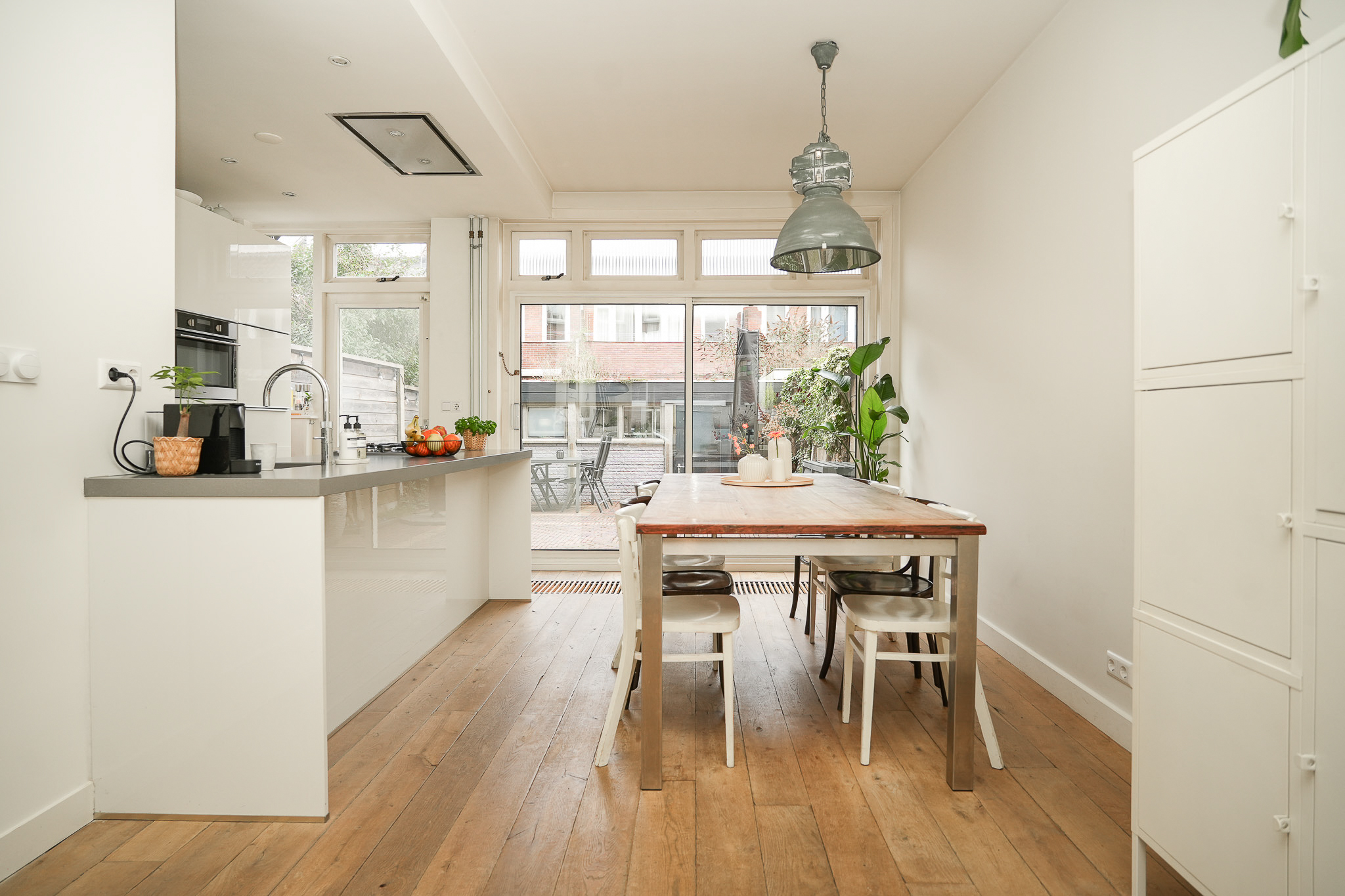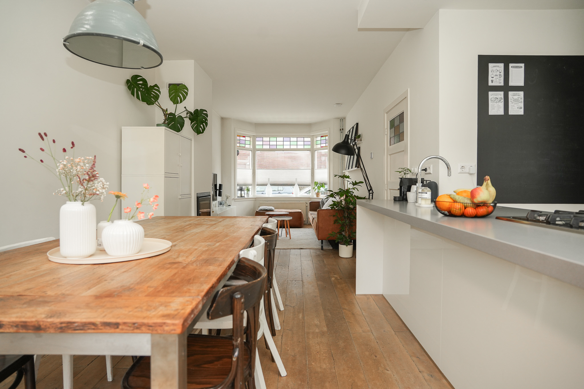 Zodra je de karakteristieke hal binnenstapt, voelt het meteen goed. Originele details, veel licht en een verzorgde afwerking laten zien dat deze woning met aandacht is verbeterd. Met energielabel C, vijf slaapkamers, airco in meerdere kamers, zonnepanelen en een diepe tuin op het oosten woon je hier comfortabel en zorgeloos. Steek op een winteravond de open haard aan, kook uitgebreid aan het eiland en geniet ’s ochtends van een kop koffie terwijl de zon langzaam de tuin in draait. Dit is een echte gezinswoning waar je zó in kunt met een luxe afwerking en nog originele details zoals glas-in-lood ramen en paneeldeuren.