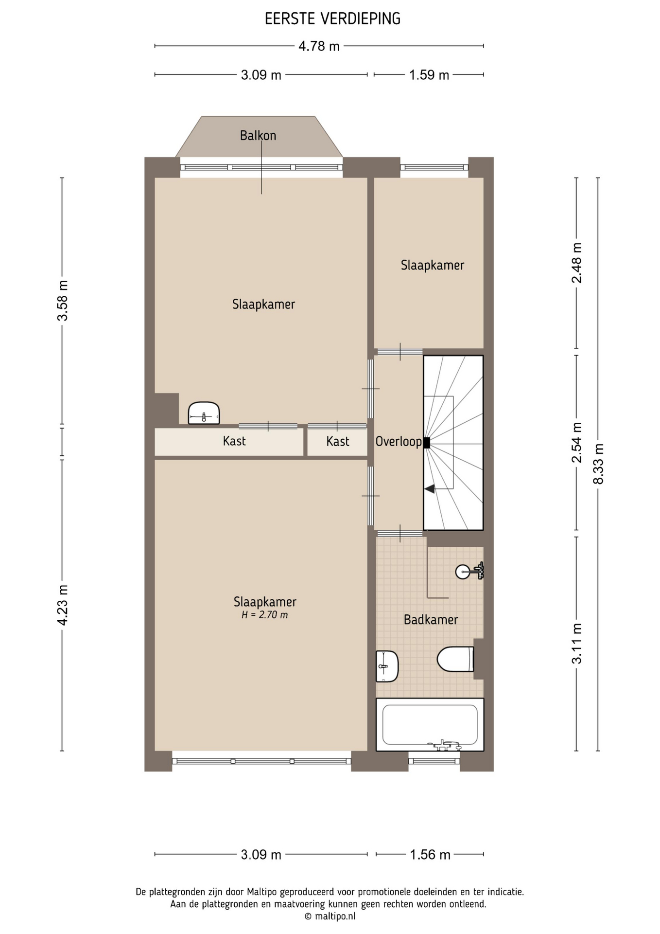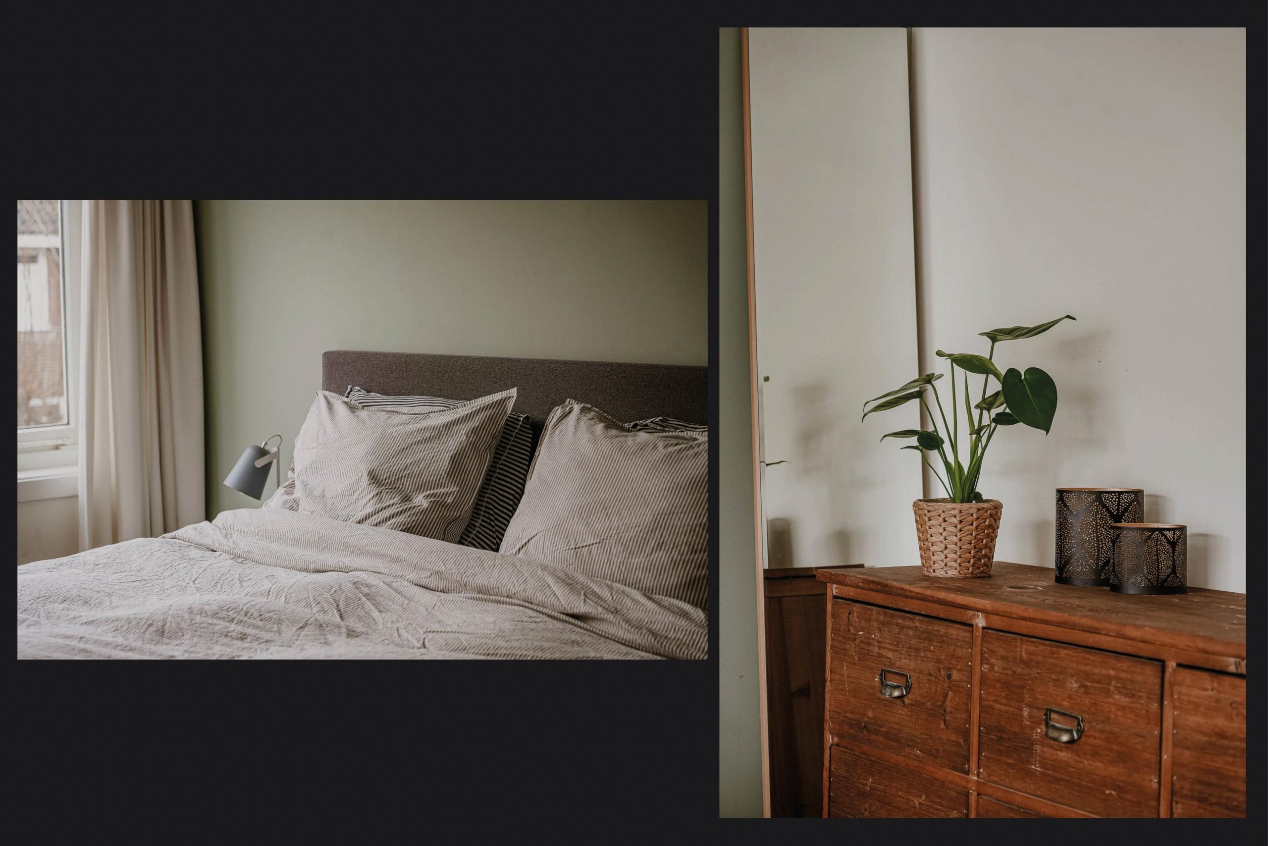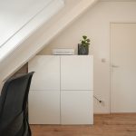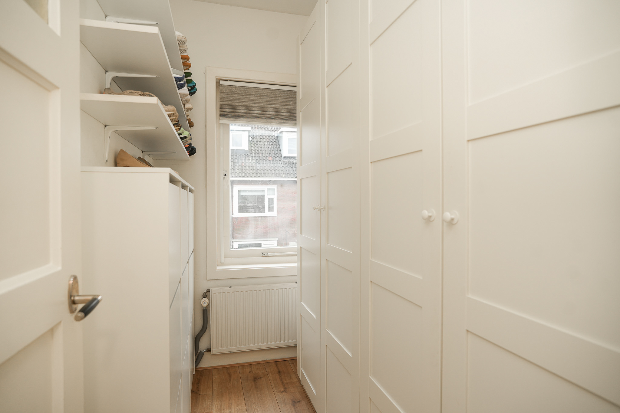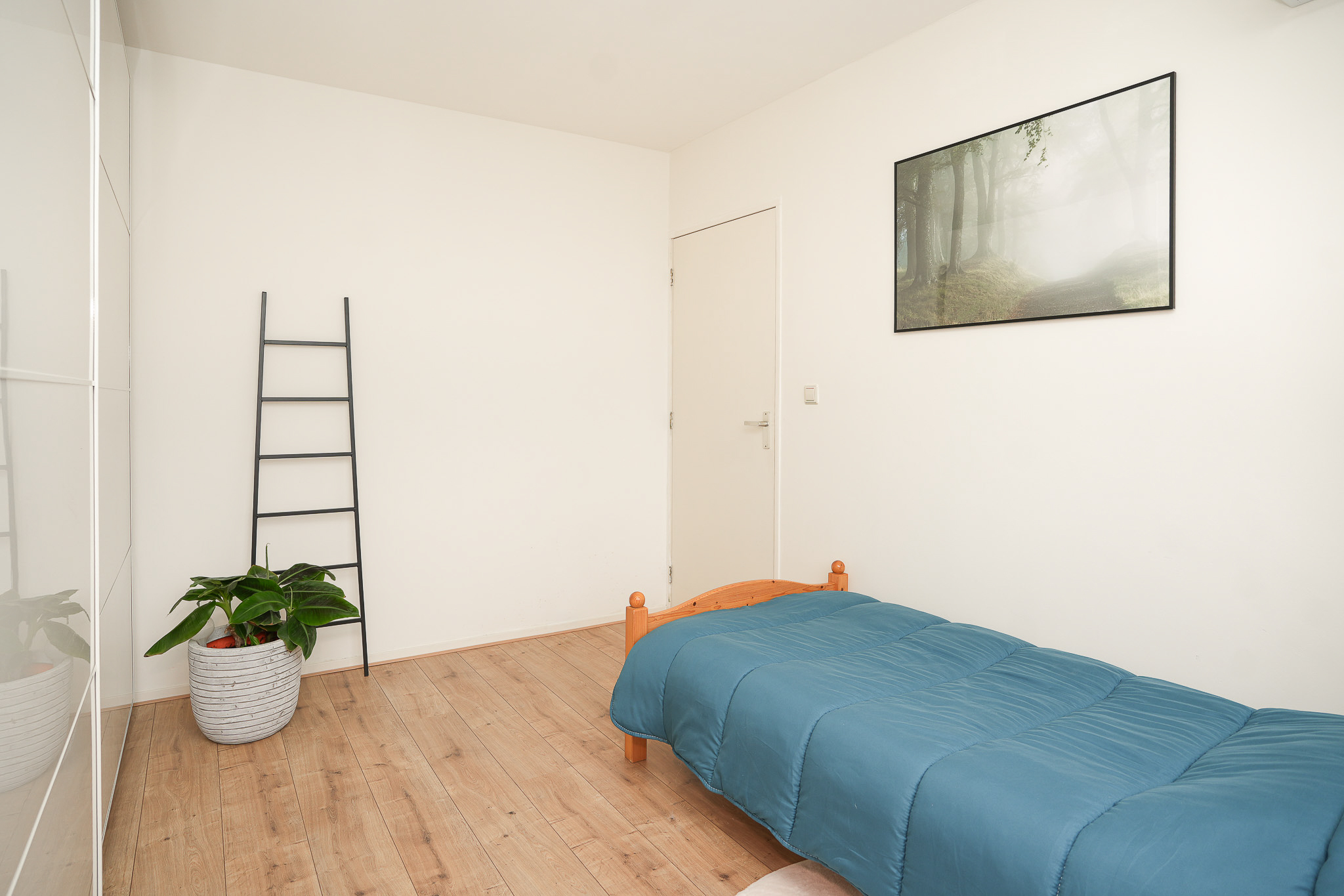 De verdieping is verrassend ruim door de dakopbouw aan de achterzijde en een dakkapel aan de voorzijde. Aan de voorzijde ligt een prettige kamer, ideaal als werk- of slaapkamer met lekker veel lichtinval. Aan de achterzijde bevindt zich een ruime slaapkamer eveneens zeer licht door de grote ramen en voorzien van airco. De diepe vensterbank geeft een leuk effect en is perfect als knusse zitplek met een paar kussens.