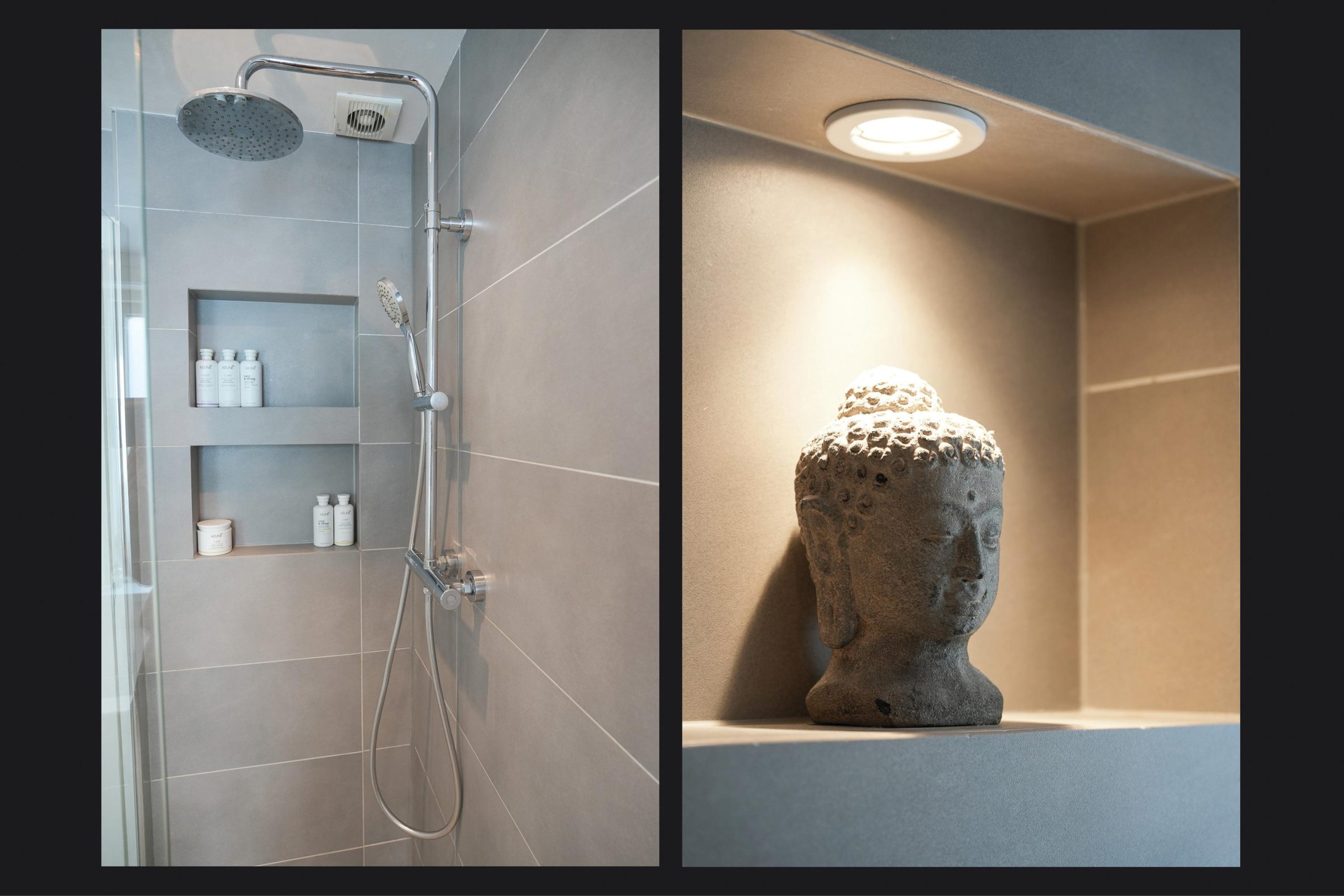 Daarnaast is er een aparte wasruimte en een praktische berging, beide bereikbaar vanaf de overloop.