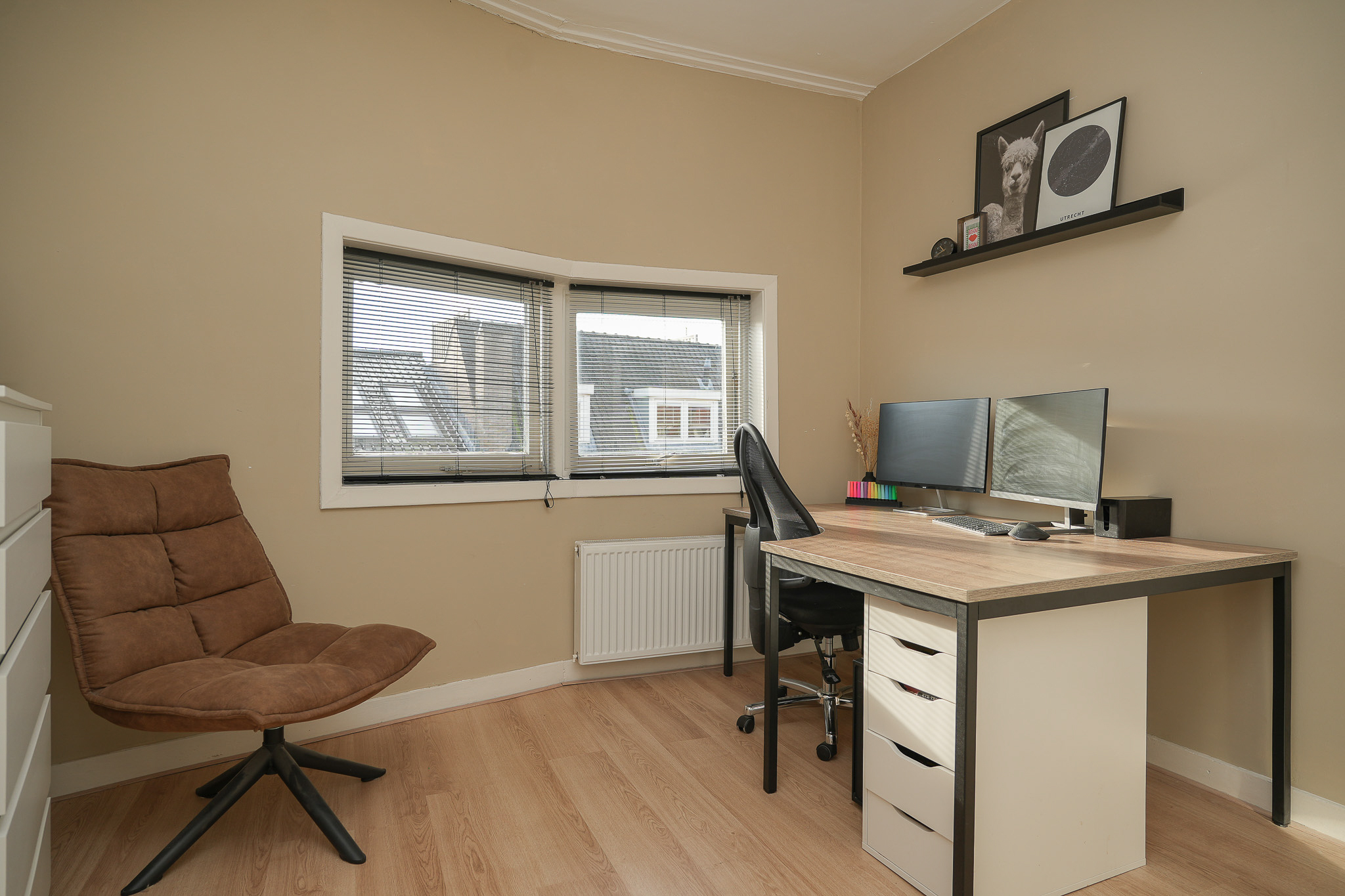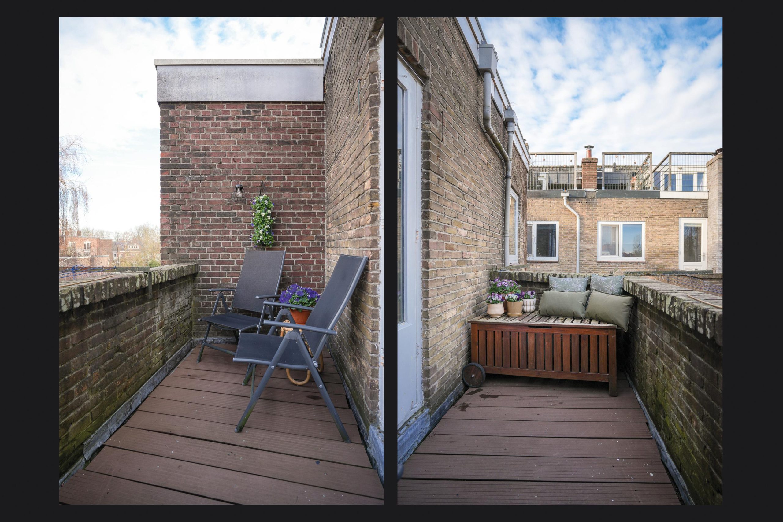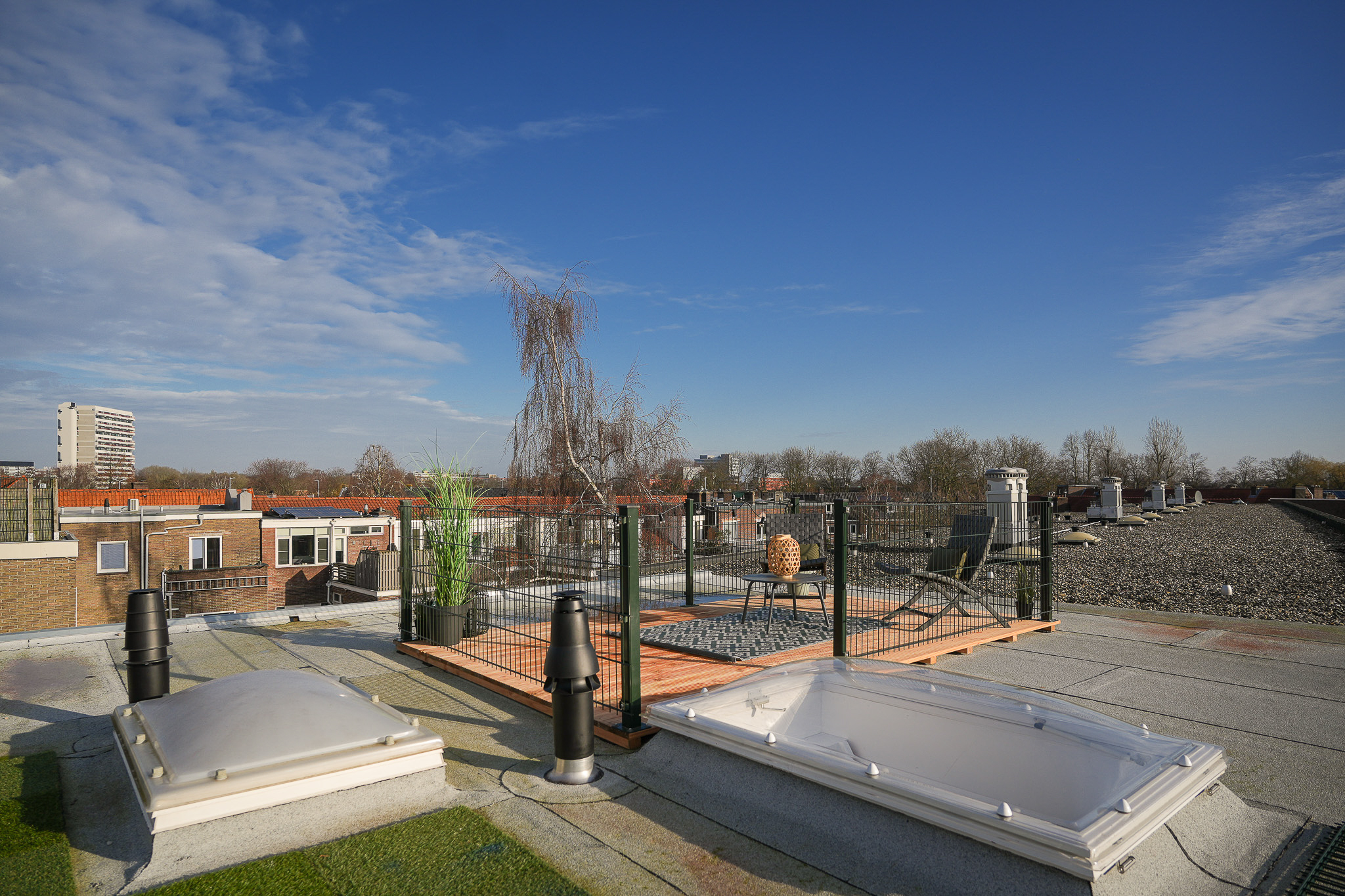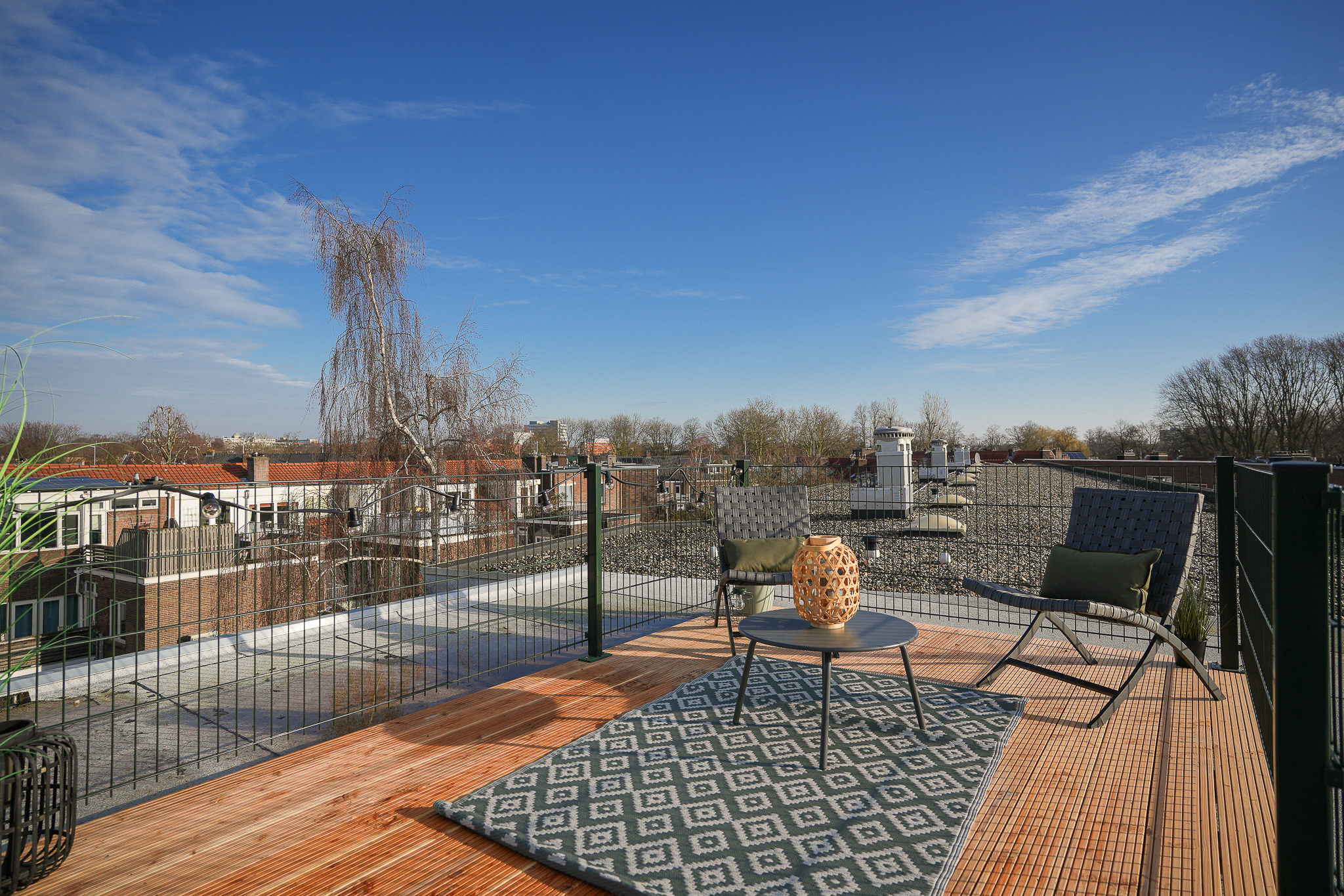 Als het lekker weer is, is dit dé plek waar je wilt zijn. Op het dakterras heb je alle ruimte voor een loungeset en een eettafel, perfect voor borrels, barbecue-avonden of gewoon even ontspannen met een boek. Je kijkt weids uit over Tuinwijk en de Vogelenbuurt, met de stad Utrecht aan je voeten en een prachtig zicht op de Dom. Extra leuk detail. De straat is vernoemd naar Jan van Henegouwen, bijgenaamd Jan van den Doem, de eerste bouwmeester die het onderste deel van de Dom bouwde. Zo komt het uitzicht ineens met een stukje historie.