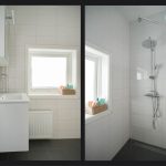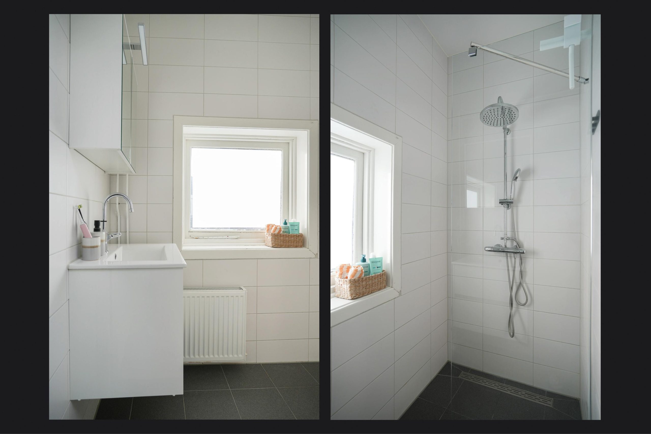 De badkamer is praktisch ingericht met een douche en wastafel.