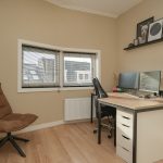Op de slaapverdieping vind je een ruime overloop met toegang tot alle vertrekken. Er zijn drie slaapkamers, ideaal als je naast slapen ook een werkkamer of logeerkamer wilt. De slaapkamer aan de achterzijde heeft twee vaste kasten en dubbele deuren naar het balkon. Even de deuren open en je staat zo buiten voor een frisse start van de dag.